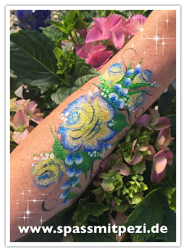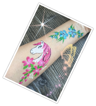 Für ein Kind benötigt man ca. 3 - 7 Minuten, je nach Größe und Motiv, um ein professionelles Schminkergebnis zu bekommen. Fantasievolle Bemalungen und Tattoos mit Airbrush, sowie Tattoos mit schönen Glitzereffekten entstehen in dieser kurzen Zeit vor den Augen Ihrer Besucher. Die Kleinen manchmal auch die Erwachsenen verwandeln Ihre Veranstaltung in ein unvergessliches und farbenfrohes Erlebnis.